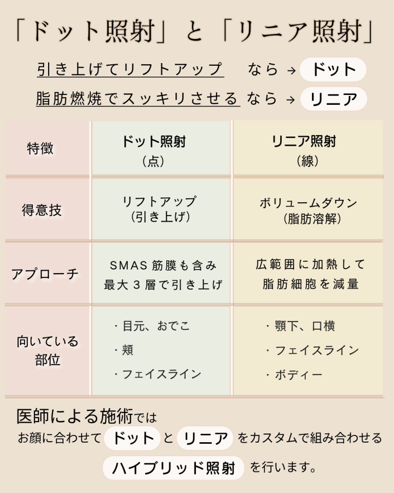 ハイフの照射モードには 「ドット」 と 「リニア」 があります。